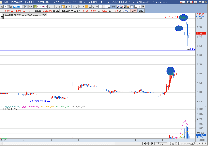 비츠로테크 분봉상에서도 좋은 모습을 보여주었습니다. (전고점돌파 > 매물소화 > 다시 전고점돌파)의 모습은