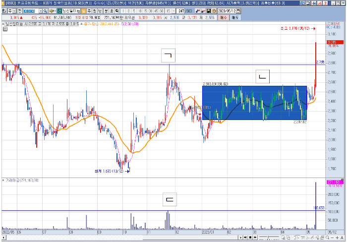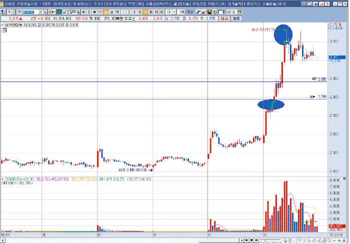 오늘국장이 전체적으로 하방이었지만 급등한 중목이 몇몇 있었습니다. 그중 관심 종목에 들어온 남선알미늄.