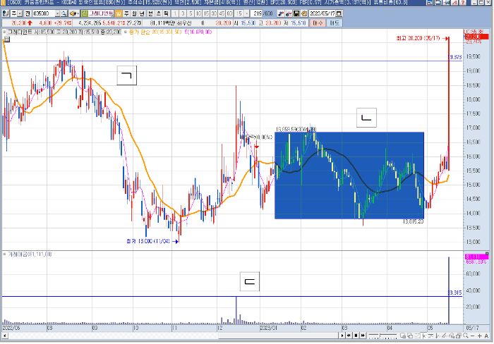 ( 장대양봉후 > 매물소화 > 고점돌파 )의 모습을 보여주며 강한 힘을 보여주었습니다.