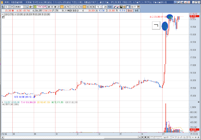 그래디언트 오늘 일봉상 아주 좋은모습을 보여주며 상한가로 마무리 하였습니다.