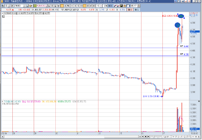 hlb바이오스텝 분봉에서는 좋은 모습을 보여주었습니다. 장대양봉뒤 매물소화, 다시 고점돌파의 모습을